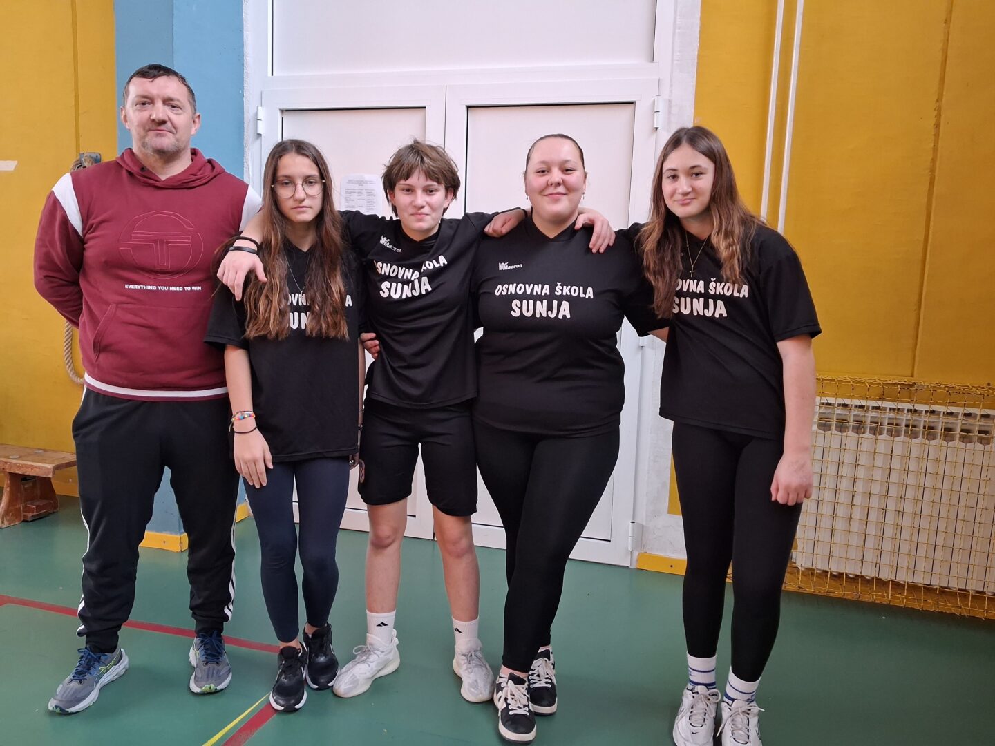 U konkurenciji triju škola OŠ Sunja zauzela je drugo mjesto u ukupnom poretku. Prvi susret igrali smo s OŠ Mladost iz Lekenika i nakon teške i neizvjesne utakmice izgubili rezultatom 2:0 u setovima. Sljedeću utakmicu igrali smo s OŠ Braća Radić iz Martinske Vesi i pobijedili rezultatom 2:0 u setovima.